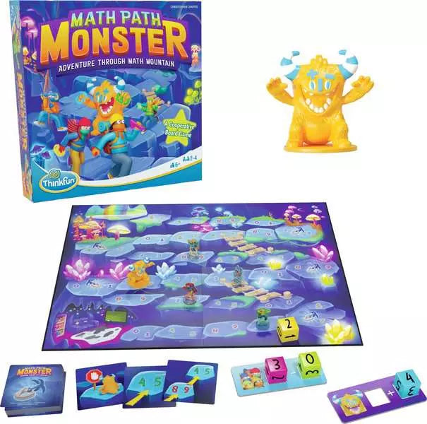 Math Path Monster is the cooperative game that turns math into an epic race to the entrance of the cave. Deep in the mountain lies the Math Monster's lair and as soon as you discover them, you and your friends race them to the entrance of the cave. Foster teamwork and collaboration as players unite to outsmart the monster using addition and subtraction. Perfect for kids 6 and up and enjoyable for grown-ups to play as well!